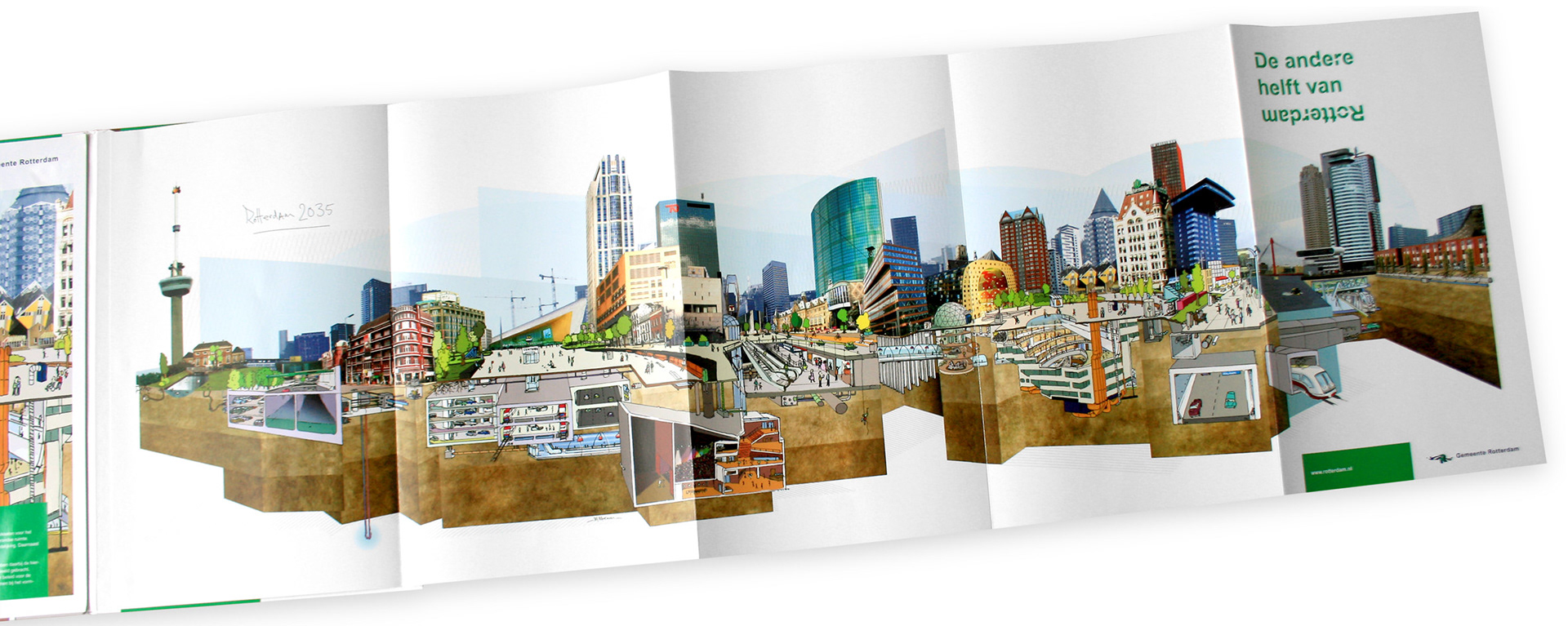 Voor de Gemeente Rotterdam hebben we allerlei opdrachten gedaan. Onder andere cartoons en illustraties in de Stadskrant, bouwborden, illustraties voor het personeelsmagazine 'Stadswerker', en een visiedocument over 'De andere helft van Rotterdam'
